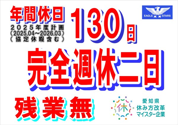 仕事も大事、余暇も大事の企業精神。ワークライフバランスを大切にした好バランスが良い製品づくりにつながっている「愛知県休み方改革マイスター企業」認定の会社です。    残業0時間!有給消化率90.7%!
