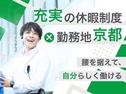 勤務地は京都府内限定。有休は年20日取得可能で、6連休が取れる「ぷらちなホリデー」など、無理なく続けられる働き方が整っています。