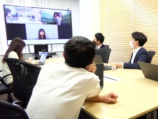 ミーティングルーム*常駐社員や、在宅社員がいるので、Webと対面を併用し会議を行っている光景がよく見られます。これからも社員がよりベストパフォーマンスできるような働き方を追求していきます!