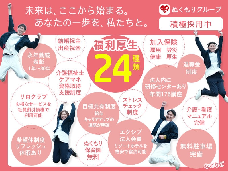 ぬくもりグループは、医療法人・社会福祉法人・学校法人・株式会社を持つグループ法人として、