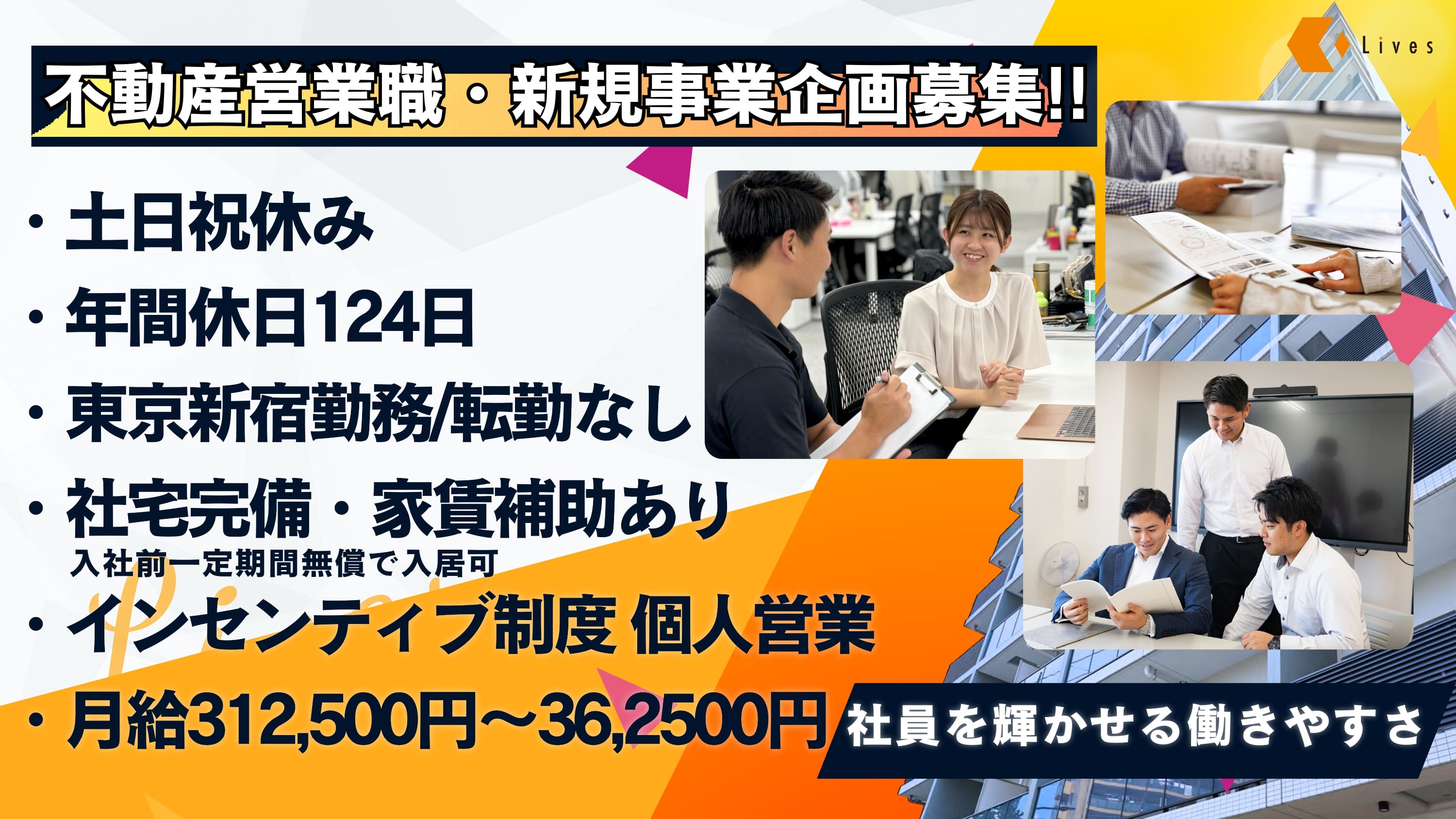社宅完備★福利厚生の一環として自社ブランドのマンションに社宅として入居可能。敷金・礼金・更新料0円で、毎月3万円の家賃補助付き!都内や横浜の駅近・設備充実の物件に5万円台から住むことができます。