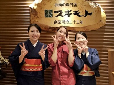 『すき焼・しゃぶしゃぶスギモト本店』スギモト本店では着物を着用。お客様のお席でお肉を焼いたり、食材をお鍋に入れたりしながらフルサービスでお客様をおもてなしします。