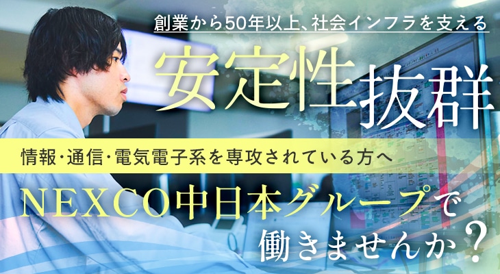 【NEXCO中日本グループ】の一員として、創業50年以上の確かな技術とノウハウで社会インフラの安全・安心に貢献しています。