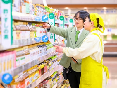 1年間の手厚い新人研修のほかにも、700本の動画マニュアル、先輩が伴走するメンター制度など、未経験から着実に成長していける教育カリキュラムを用意。将来は商品開発やバイヤーへの道も開けており、現場での経験を活かしながら多様なキャリアを描ける職場です。