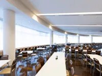 工場は冷暖房完備で快適!カフェテリア形式の食堂もあり