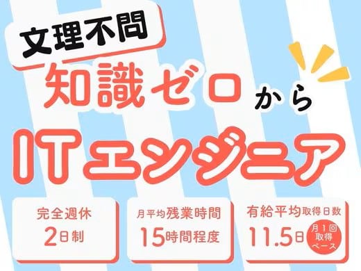 文理不問!IT業界に興味がある方歓迎◆創業以来連続黒字経営◆完全週休2日制/有給休暇が取得しやすい