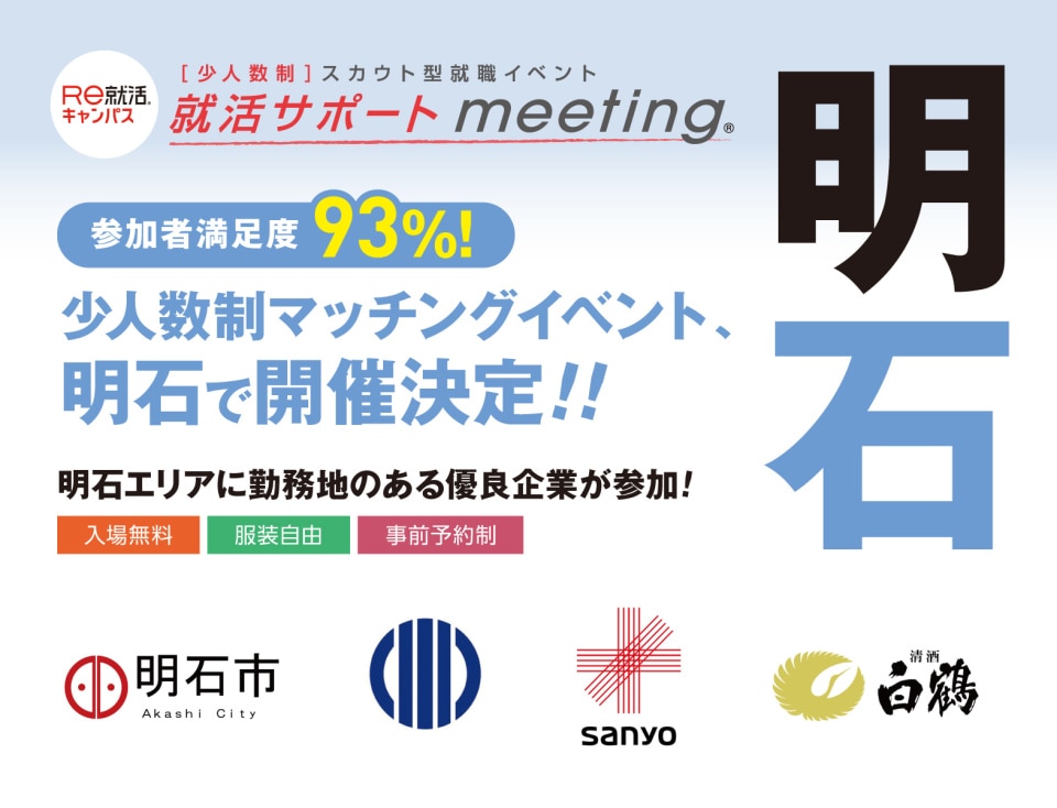 少人数制イベント <少人数制>就活サポートmeeting in 神戸 27卒 少人数制イベント <少人数制>就活サポートmeeting in 神戸 27卒 【兵庫】 10/11(土) 会場:三宮コンベンションセンター 詳細を見る 参加予約する